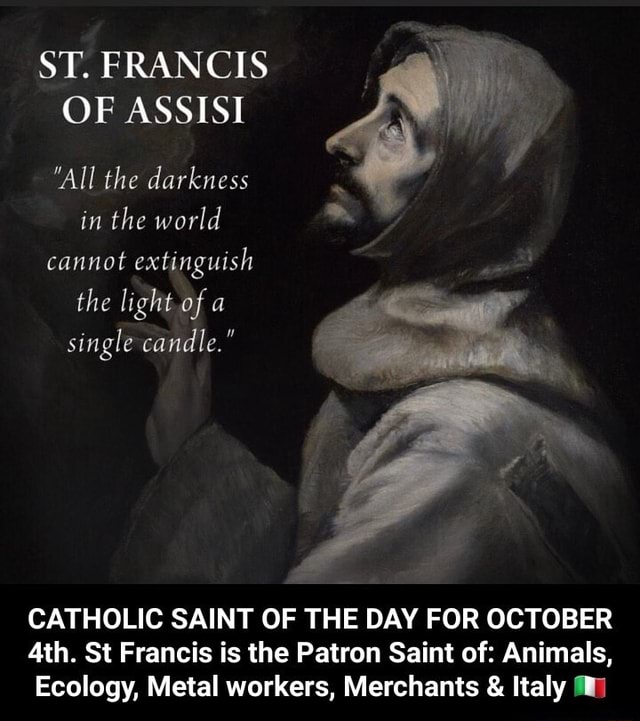 St Francis Of Assisi All The Darkness In The World Cannot Extinguish The Light Of A Single Candle Catholic Saint Of The Day For October St Francis Is The Patron Saint Of